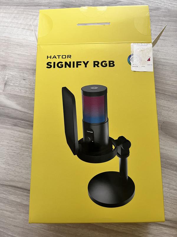 Це мікрофон Hator Signify RGB. Тип мікрофона: конденсаторний, кардіоїдний. Діапазон частот: 20 Гц - 16 кГц. Підсвічування: RGB з сенсорним керуванням. Підключення: USB Type-C. Особливості: металевий корпус, антивібраційне кріплення та сенсорна кнопка вимкнення звуку. Купили ,але ні разу не знадобився.