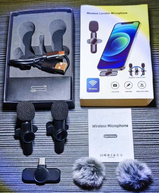 Беспроводной петличный микрофон / 4 насадки / зарядка type-c