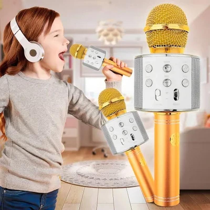 Беспроводной микрофон караоке ws-858 Bluetooth с изменением голоса портативный USB-микрофон Золотой Мобильный караоке-микрофон WS-858 может стать отличным инструментом для начинающих вокалистов или средством скрасить приятный вечер в компании друзей. Портативный комбо микрофон можно использовать как MP3-плеер, портативную колонку или караоке-микрофон в комбинации со смартфоном или планшетом, и даже как мобильное зарядное устройство в экстренных ситуациях. Модель WS-858 оснащена беспроводным модулем Bluetooth, слотом USB и microUSB для чтения музыкальных файлов. Описание: - Ручная караоке система WS-858 - заслуженно можно назвать ультра мобильным! Микрофон имеет встроенный аккумулятор и динамики, а значит что он не "привязан" ни к розетке, ни к дополнительной акустике. Wireless Microphone отлично подойдет для домашнего использования, в качестве подарка ребенку или для профессиональной эксплуатации ведущим на праздник/вечеринку или другое торжество. Оцененная по достоинству многими покупателями портативная караоке система WS-858 - одна из лучших моделей по соотношению цена/качество, а так же по набору функций. Характеристики: - Модель: WS-858 - Дизайн: Ручной микрофон с аудио модулем, встроенные динамики - Версия Bluetooth: V4.0 + EDR - Протокол: AVRCP, A2DP, HSP / HFP - Совместимость: iPhone 4s / 5 / 5s / 6 / 6 Plus / 6s / 6s Plus / 5se, iPad mini 2 / mini 4, new iPad, iPad air 1/ 2, iPad Pro, Samsung Galaxy S4 / S5 / S6 / S6 edge / S7 / S7 edge / Galaxy Note3 / Note4 / Note5 / Note edge, HTC, BlackBerry, Sony, LG и др. - Расстояние подключения: 10 м - Мощность спикера: 5 Вт (каналы 1.0) - Частота: 100 Гц-10 кГц - SPL: 115 дБ, THD - менее 1% - Искажение: >=0.5% - Сопротивление (импеданс): 4 ? - Чувствительность: -40 ± 3 дБ - Интерфейс: 3,5 мм (наушники), Micro USB, TF слот для карты, USB - Поддержка файлов: MP3, WMA - Источник питания: USB, батарея - Рабочее время: 5-8 часов - Режим ожидания: 360 часов - Тип батареи: Литий-ионный 18650 аккумулятор 3.7 Вт, 1800 мАч - Материал: Алюминий, ABS пластик - Цвета: Черный, Золото, Розовый - Размер: 230 х 75 х 75 мм (?49x49 мм)