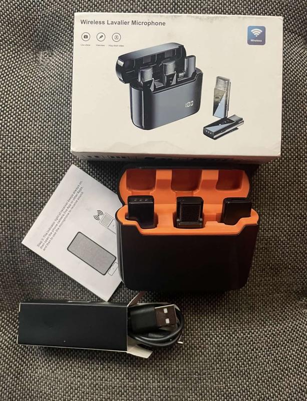 Комплект бездротових мікрофонів із зарядним футляром. Цей тип мікрофона корисний для підключення контенту, а також Інтернету, відеоблогів та передачі потоку без сторонньої допомоги. Цей комплект включає два міні-мікрофони та один приймач, які можна використовувати для автоматичного підключення (plug-and-play) до мобільних пристроїв, включаючи iPhone, смартфони Android, через відповідні адаптери. Мікрофони мають індикатори, що показують рівень заряду та стан батареї. Комплект призначений для насолоди звуком та відео, що забезпечує взаємодію з двома інструкторами одночасно. Зарядний футляр можна використовувати для заряджання мікрофонів, що також підходить для авторів мобільного контенту.