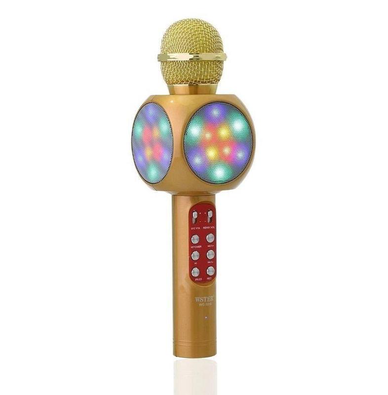 Беспроводной микрофон караоке с динамиком и цветомузыкой wster ws-1816, yellow