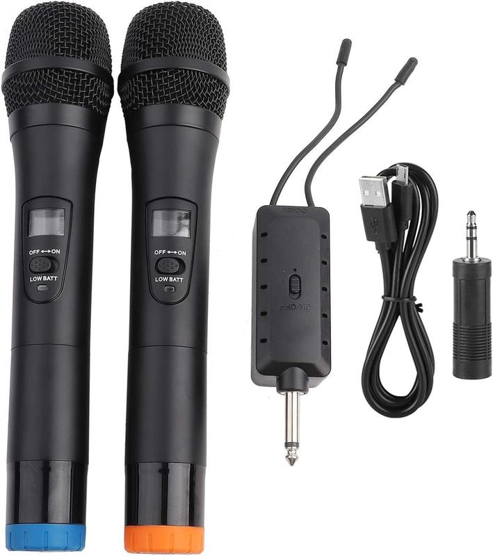 Картонная упаковка не в идеальном состоянии Беспроводной микрофон, портативная УКВ-микрофонная система с защитой от помех и светодиодным дисплеем, для семейного пения КТВ, вечеринок, выступлений, деловых встреч, совместимая с усилителем, мультимедиа (черный) Об этом товаре - БЕСПРОВОДНОЙ РУЧНОЙ МИКРОФОННЫЙ КОСТЮМ: подходит для семейного пения КТВ, вечеринок, выступлений, деловых встреч и т. д. - ВЫСОКОЕ КАЧЕСТВО: Изготовлен из алюминиевого сплава, он прочен и устойчив к падению. Высококачественный микрофон и высококачественная система фильтров для решения проблемы воя. - СТАБИЛЬНЫЙ СИГНАЛ: сильная защита от помех для стабильного сигнала, расстояние приема 100 метров. Сильный звукосниматель и чистый звук, без шума при постоянной частоте. - КРЫШКА МЕТАЛЛИЧЕСКОЙ СЕТКИ: Толстая металлическая сетчатая крышка, защищающая от падения и деформации, со встроенным высокоэффективным хлопковым фильтром для эффективной фильтрации шума ветра. Подключи и играй, прост в использовании. - ШИРОКОЕ ИСПОЛЬЗОВАНИЕ: автоматическое подключение и широкая совместимость с аудио, усилителями, мультимедиа, мобильным аудио и другими продуктами. Широкий спектр приложений для поддержки устройств, если можно подключить устройство с интерфейсом микрофона.