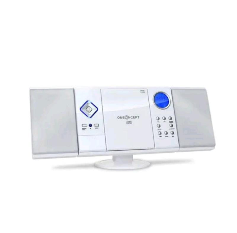 привезена из Германии нова, протестована Стереосистема oneConcept V-12-BT- это элегантное решение для любого пространства, сочетания стильного дизайна и технологического прогресса Чтобы соответствовать современным требованиям, oneConcept оснастили тремя входами для подключения внешних аудио аксессуаров. Удобно расположенные над входами USB и SD, они могут воспроизводить файлы MP3 с таких носителей, как MP3-плееры, флэш-накопители и карты памяти. Ноутбуки, смартфоны или кассетные проигрыватели бесперебойно общаются через входящий разъем В центре набора находится вертикальный проигрыватель компакт-дисков, совместимый с MP3 OneConcept имеет встроенный УКХ/МВ радиоприемник с памятью на 20 станций и часы с будильником, благодаря чему устройство идеально подходит для спальни и кухни Стереосистему можно закрепить на стене- она достаточно плоская благодаря вертикальному CD-MP3-плееру и в то же время отлично смотрится рядом, например, с ЖК-телевизором, и экономит место на шкафу поверхности Основная информация вертикальный проигрыватель компакт-дисков, совместимый с MP3 встроенный интерфейс Bluetooth для беспроводной передачи музыки со смартфонов, ноутбуков или MP3-плееров MP3-совместимые входы USB и SD для прямого воспроизведения MP3-дорожек с носителей массовой информации, например USB-флеш-накопителей, USB-MP3-плееров Вход AUX для подключения внешних аудиоустройств, таких как портативный CD-MP3-плеер или ноутбук радиоприемник с памятью на 20 станций Возможность настенного монтажа (материалы для крепления не входят в комплект Подключение: 1 x USB вход 1 x SD вход 1 x 3,5 мм разъем AUX вход 1 x 3,5 мм разъем для наушников Поддерживаемые форматы дисков: CD, CD-R, CD-RW, MP3 управляется дистанционным управлением или арматурой ручной/автоматический тюнер функция повтора функция программирования эффективная навигация между папками с файлами MP3 поддерживаемые файловые системы USB-носителей данных: FAT16, FAT32 встроенные часы просыпайтесь под звуки компакт-диска, радио, USB/SD или звуки природы проводная антенна ЖК-дисплей с голубой подсветкой питание пультa: кнопочная батарейка 3В CR2025 поставка 1 х устройство 2 х столбика 1 х подставка 1 х пульт Размеры 26,5 x 22,5 x 14 см Ш x В x Г 11 x 18 x 6 см динамик: Ш x В x Г Весa 1,04 кг