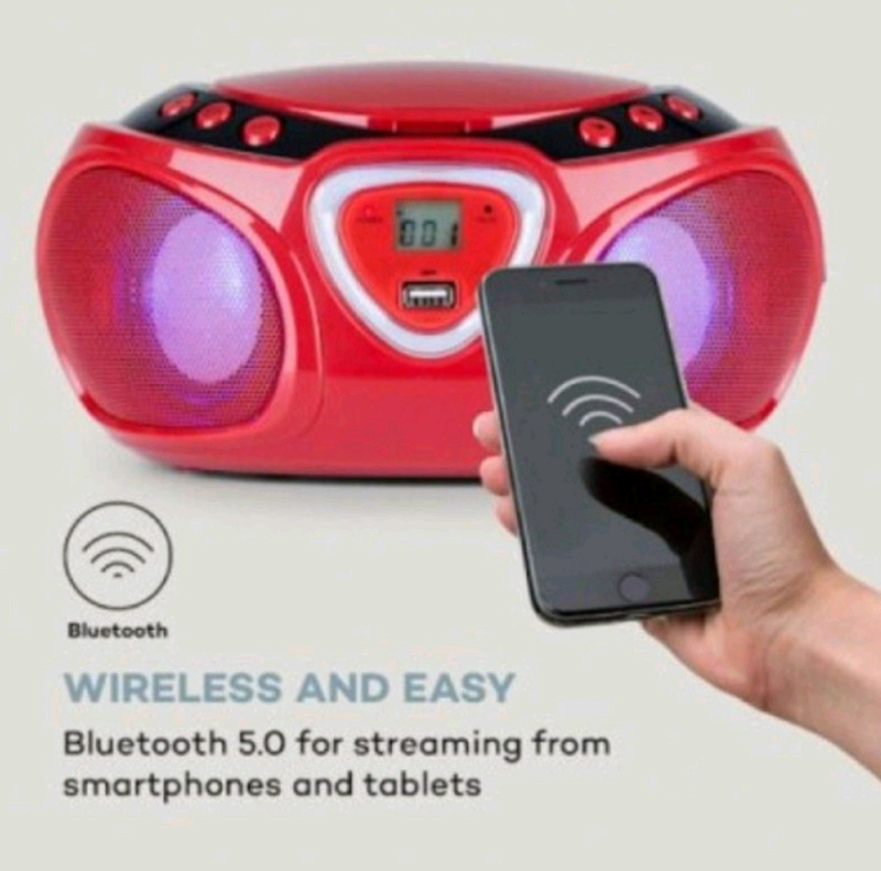 Виробник: Auna Тип: CD-програвач Страна регистрации бренда Германия Мощность 2 х 1,5 Вт Питание 220-240 В ~ | 50/60 Гц и 6 x тип C батарейки (в комплект не входят) Особенности: Портативный бумбокс с поддержкой разных форматов музыкального удовольствия. CD-плеер, порт USB и встроенное радио AM / FM. Разноцветное светодиодное освещение с контролем ритма. Bluetooth-соединение для связи с другими мультимедийными устройствами. Bluetooth: 2,400 ГГц - 2,480 ГГц; профили: A2DP, AVRCP; 2.1 + EDR. Программируемый режим воспроизведения: список воспроизведения с 20 (CD) или 99 (MP3) заголовками. Дополнительные режимы воспроизведения: повторить все,папка повтора и случайное повторение. Аналоговый регулятор громкости. Выдвижная антенна. AM или FM диапазон частот. Комплектация: 1 x проигрыватель 1 x кабель питания Мультимедийные характеристики Входы 1х USB 1x AUX 3,5 мм Выходы 1x 3.5 мм гнездо наушников Поддерживаемые форматы Совместимые форматы CD: аудио CD, CD-R, CD-RW и MP3-CD. Поддерживаемые типы файлов: MP3, WMA. Размеры- 24 х 13 х 20 см (ШхВхГ) Вес- 1,5 кг Привезена из Германии. Как новий. Проверено...все функции работают: CD FM USB Bluetooth разноцветное светодиодное освещение в такт музики Cмотрите ещё много интересного на моей страничке.