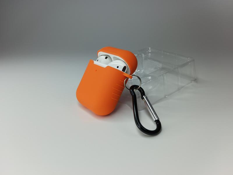 Чехол для airpods 1 / 2 с карабином плотный силиконовый чехол для наушников оранжевый