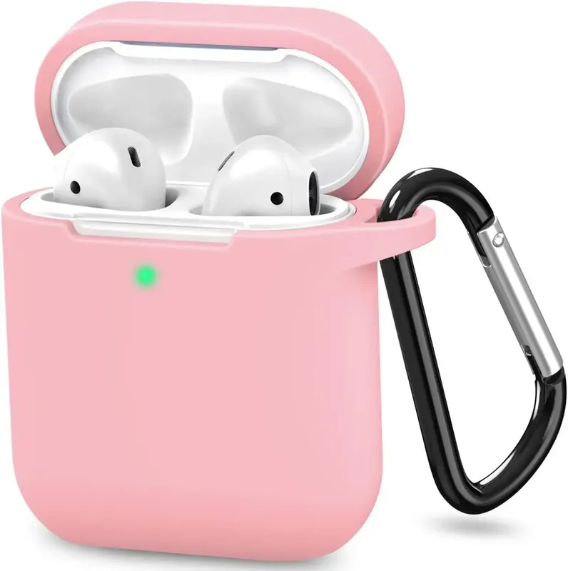 Чехол для наушников apple airpods 1 2 силиконовый люминесцентный с карабином светло-розовы...