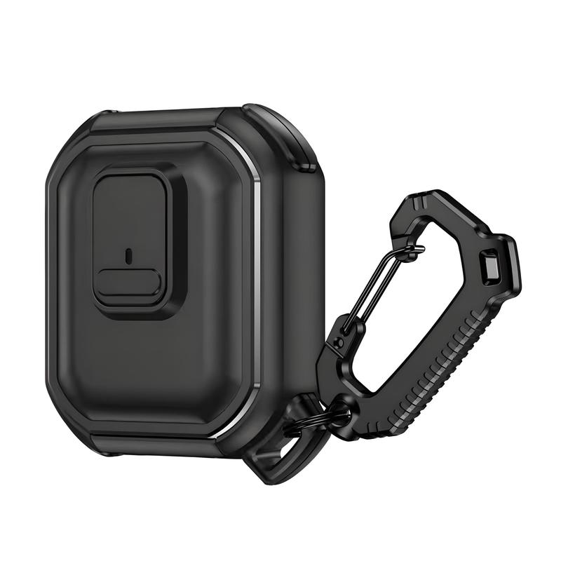 Защитный ударопрочный чехол для наушников airpods 2 с карабином и защёлкой, чёрный