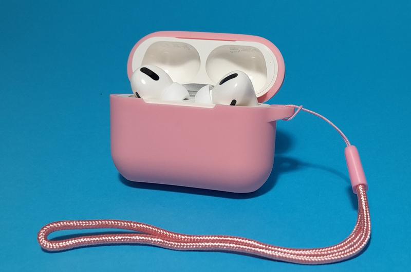 Чехол silicone case для airpods pro с ремешком в розовом цвете
