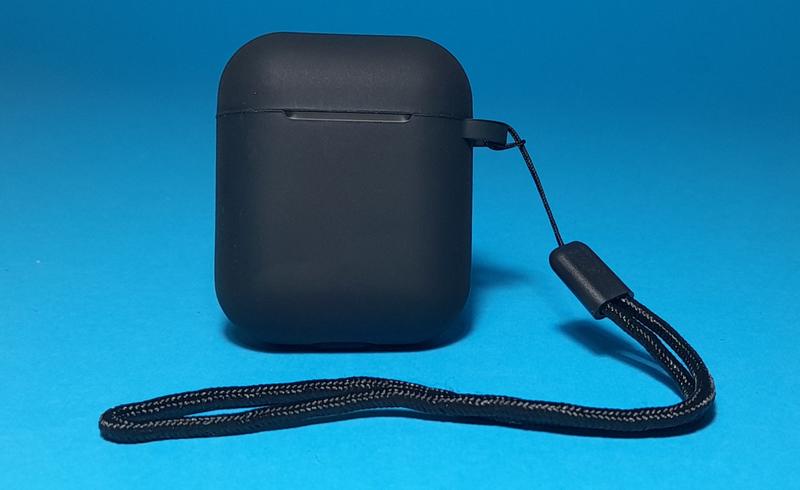 Чехол silicone case для airpods 2 с ремешком в черном цвете