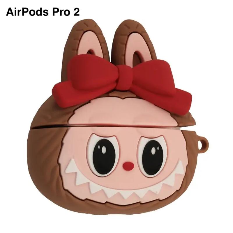 Чехол для наушников airpods pro 2 лабуба labubu с бантом коричневый