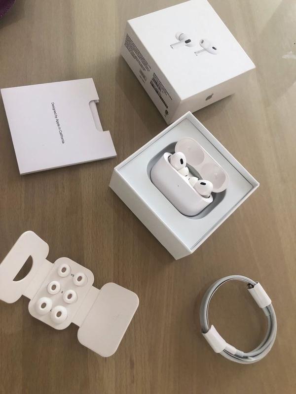 Технічні характеристики: -Airpods Pro2 gen 1:1 -Активне шумозаглушення -Адаптивна прозорість -Кнопкове/сенсорне управління -Бездротове підключення: Bluetooth 5.3 -Вбудований мікрофон -Акселерометр розпізнавання руху -Акселерометр виявлення голосової активності -Адаптивний еквалайзер -Побутова водонепроникність -Час роботи (відтворення): 4-5 год Комплектація: 1.Навушники 2.Зарядний кейс 3.Кабель Type-С - Lightning 4.Змінні амбушури 5.Документація 6.Bluetooth навушники AirPods Pro 2