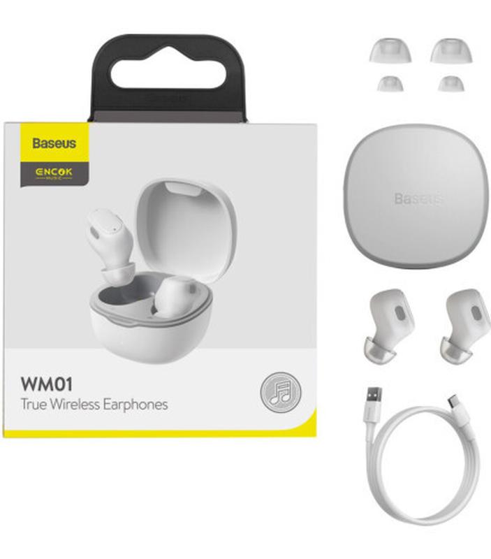 Baseus Encok TWS WM01 Наушники Baseus Encok TWS WM01 в формате мини-вкладышей сделаны с учетом эргономических требований: стильные, с удобной посадкой в ухе, не обремененные проводными конструкциями - максимально легкие и компактные. Для работы с гаджетами используют протокол Bluetooth 5 версии с дальностью сигнала до 10 м. Прочная внешняя оболочка не создает люфтов и помех при звучании. Обеспечивают изоляцию от шума внешней среды, чтобы каждый смог насладиться чистейшим звучанием в любых условиях. Идеальный бас Для формирования качественного звука использовано аудиооборудование, поддерживающее частотный диапазон в пределах 20 Гц-20 кГц. При этом особое внимание уделено басовым нотам, которые имеют выраженный насыщенный характер. Полиуретановая композитная пленка позволит низким частотам зазвучать так, как это было задумано изначально - мягко, всеобъемлюще и мощно. Автоматическое сопряжение При включении наушники Baseus Encok TWS WM01 сразу же подключаются к необходимому девайсу, что значительно упрощает момент соединения нескольких устройств. Больше не нужно тратить время на сопряжение и поиск оборудования вручную - теперь все делается моментально и автоматизировано. Полный комфорт не только в процессе эксплуатации, но и на этапе предварительных настроек. Сенсорное управление Модель применяет сенсорную панель, чувствительную к прикосновениям, чтобы пользователь взаимодействовал с устройством. Длительные и короткие одно- и двукратные прикосновения позволят отвечать на телефонные звонки и завершать их, выбирать треки, вызвать сервис голосового ассистента и пр. Применять наушники можно в паре или же по одному - как гарнитуру. Продуманный зарядный кейс Зарядный футляр Baseus Encok TWS WM01 подключается к сети при помощи кабеля USB-C. На его поверхности имеется световой индикатор, сигнализирующий о том, что идет зарядка: 1.5 часа понадобится, чтобы восполнить ресурс аккумулятора 300 мАч. При уровне громкости 70% наушники будут работоспособны 5 часов, а вместе с кейсом - 25 часов. Характеристики Основные Тип наушников Вакуумные Тип подключения Беспроводное TWS с Bluetooth Акустическое оформление По типу акустического оформления различают три вида наушников: без шумоизоляции (открытые), с шумоизоляцией (закрытые) и с неполной шумоизоляцией (полуоткрытые). Закрытые Назначение Для смартфона и плеера Тип крепления Без доп. креплений Материал амбушюр Амбушюрами называют часть наушников, напрямую соприкасающуюся с ухом человека. Материал амбушюр напрямую влияет на комфорт слушателя при ношении и качество звучания. Силикон Тип излучателя Динамический Наличие микрофона Есть Управление Голосовое управление, Принять/отклонить вызов, Управления треками Разъем зарядного устройства USB Type-C Диапазон частот наушников 20 - 20000 Гц Вес 4 г (наушник) Дополнительно Версия Bluetooth: V5.0 Рабочий диапазон: в пределах 10 метров Емкость аккумулятора бокса: 300 mAh Емкость аккумулятора одного наушника: 40 mAh Общее время работы (с зарядкой наушников в кейсе): 25 часов Время работы: 5 часов (при громкости 70%) Время ожидания: 250 часов Время зарядки: около 1,5 часа Размер наушников: 25 x 20 мм Размер кейса: 43 x 43 x 30 мм Цвет Белый Страна производитель Китай
