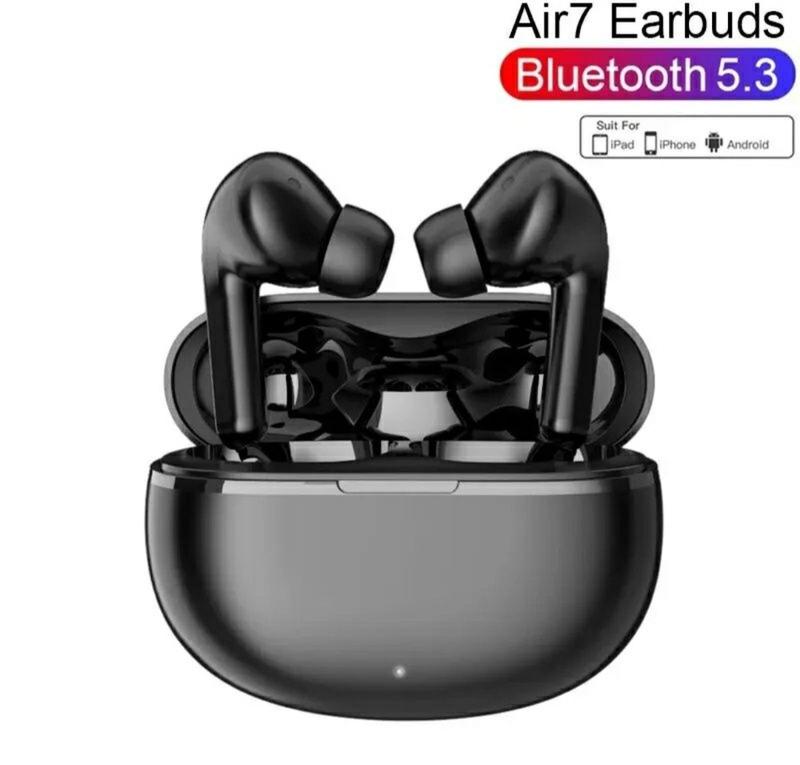 Беспроводные наушники Air7 – отличные наушники, которые обеспечат комфорт всем пользователям. Наушники мгновенно подключаются к вашему смартфону, планшету или ноутбуку по Bluetooth в радиусе действия до 10 метров. Полностью совместимы со всеми платформами: iOS, Android и Windows. Беспроводные вакуумные Bluetooth наушники Air Pro7 от производителя Think Plus — удобные, прочные, качественные. Эти вакуумные наушники отличаются качественным глубоким звуком стерео, Hi-Fi качества. Имеют микрофон и активное шумоподавление. Небольшой удобный бокс, аккумулятор 400 мАh. В наличии черного цвета. Выполнены из качественной пластмассы, имеют CE эвропейское свидетельство качества, наушники пыле-влагозащищенные. Эта модель будет радовать вас каждый день качественным звучанием, во время отдыха и работы, или пути. Если вам нравится эта модель, можете сразу заказывать. Характеристика наушников Air Pro7: - Время работы в режиме прослушивания музыки или разговоров: 3-4 часа - Время работы в режиме ожидания: до 220 часов; - Время подзарядки до 1 ч. Bluetooth version: 5.3. Комплектация: наушники, бокс, резиновые вкладыши, и кабель зарядный type-c.