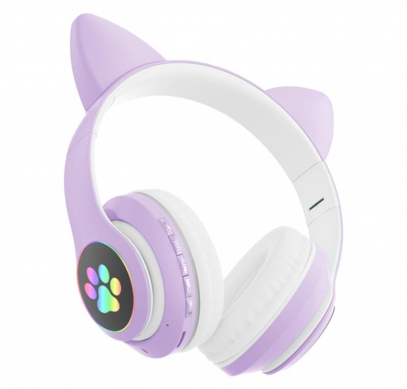 Беспроводные bluetooth наушники с ушками cat ear vzv-23m/ 7805 с led подсветкой фиолетовые