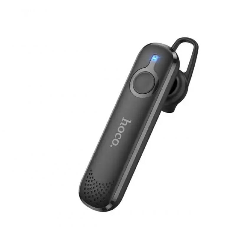 Hoco E63 "Diamond" - беспроводная гарнитура с микрофоном, 70mAh для 4 часов звонков и музыки и 180 часов в режиме ожидания. Hoco E63 "Diamond" - это очень компактная Bluetooth гарнитура с качественной передачей звука и чувствительным микрофоном, которая поддерживает прослушивание музыки и работает до 6 часов на одном заряде батареи! Этот стильный и компактный гаджет размером 66x14x27мм идеально подходит для поездок за рулем или на велосипеде, для занятий спортом или другими делами, в случае необходимости постоянного принятия звонков. Эргономичная конструкция гарнитуры обеспечивает комфорт при длительном использовании и не вызывает неприятных ощущений в ухе, наушник удобно закрепляется в ушной раковине. Корпус гарнитуры очень легок и весит всего 6г, выполненный из прочного ABS пластика, способного выдержать случайный удар или падение. На корпусе имеется разъем Micro-USB для зарядки, светодиодный индикатор, сообщающий о подключении или разрядке, кнопка управления вызовом. Встроенный аккумулятор емкостью 70mAh на полном заряде рабочее время в режиме разговора или прослушивания музыки составляет до 4 часов при уровне громкости 80%, а в режиме ожидания до 180 часов. Полный заряд аккумулятора происходит через час. Технические характеристики - Bluetooth: V5.0, чип Jerry JLAC6963; - Поддержка протоколов: Headset, Hands-free, A2DP, Avrcp; - Время работы: до 4 часов непрерывного использования; - Время работы: 180 часов в режиме ожидания; - Время зарядки: около 1 часа; - Емкость батареи наушника: 70 мАч; - Порт для зарядки: MicroUSB (кабель в комплекте); - Размер: 66x14x27мм; - Общий вес: 6гр. Комплектация: Моногарнитура Hoco E63 Кабель для зарядки Упаковка