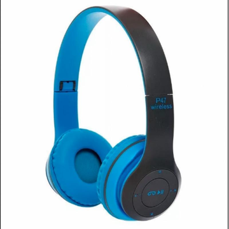 P47 Wireless Headphones – это хорошая модель универсальных беспроводных блютуз наушников с FM приемником. Наушники сочетают в себе отличный мощный звук, супер дизайн, качество, а также удобную эргономику управления. *Работают от встроенного аккумулятора, который заряжается с помощью кабеля USB-micro USB (кабель в комплекте). Аккумулятора хватает до 6 часов непрерывного прослушивания музыки. *Музыку можно слушать по Bluetooth (сигнал на расстоянии до 10 м), с карты памяти MicroSD или FM-радио, можно подключить наушники к проигрывателю музыки через аудио кабель (когда сел аккумулятор или нет возможности использовать Bluetooth). Также наушники имеют встроенный микрофон и можно использовать для разговоров по телефону. *Для переключения треков и увеличения/уменьшения громкости на наушниках расположены кнопки управления. Также есть цветной индикатор. *Наушники надежно фиксируются на голове с помощью вертикальной дужки, соединяющей их чашки, поэтому могут использоваться во время пробежки или другой физической активности. Размер дужки регулируется. Характеристики: Тип: закрытые, беспроводные Материал амбушюра: эластичный кожзам Функции: Bluetooth, радио, MicroSD, AUX, микрофон Источник питания: встроенный аккумулятор Зарядка аккумулятора: от сети 220V Цвет: черный, белый с черным, серый с красным, Синий Размеры: с коробкой – 11*17*7см Вес: комплект с коробкой – 205г, наушники – 135г Комплектация: наушники P47 USB/micro-USB кабель инструкция (англ.) упаковка
