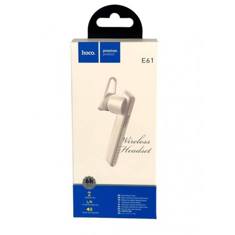 Гарнітура Bluetooth HOCO E61. Версія Bluetooth - 5.1. Час розмови - до 6 год. Час очікування - до 180 год. Дальність передачі - 10 м. Ємність батареї - 40 mAh. Розміри – 6,4х1,5х2,9 см. Вага - 6 гр. Упаковка – коробка.