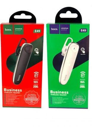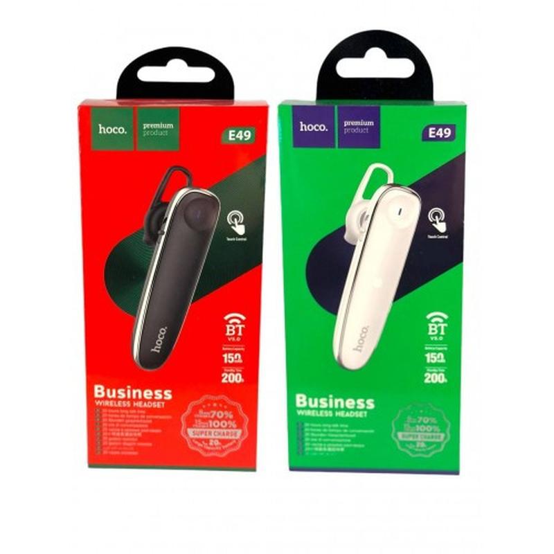 Гарнітура Bluetooth HOCO E49. Bluetooth - 5.0. Чіп - Blue Flood 5335B. Підтримка протоколів - Headset, Hands-free, A2DP, Avrcp. Час роботи - до 20 год. Час роботи у режимі очікування - 200 год. Ємність батареї навушника - 150 мАг. Час заряджання - близько 15 хв. Порт для зарядки - Type-C. Розмір - 6,6х1,7х2,5 см. Упаковка – коробка.