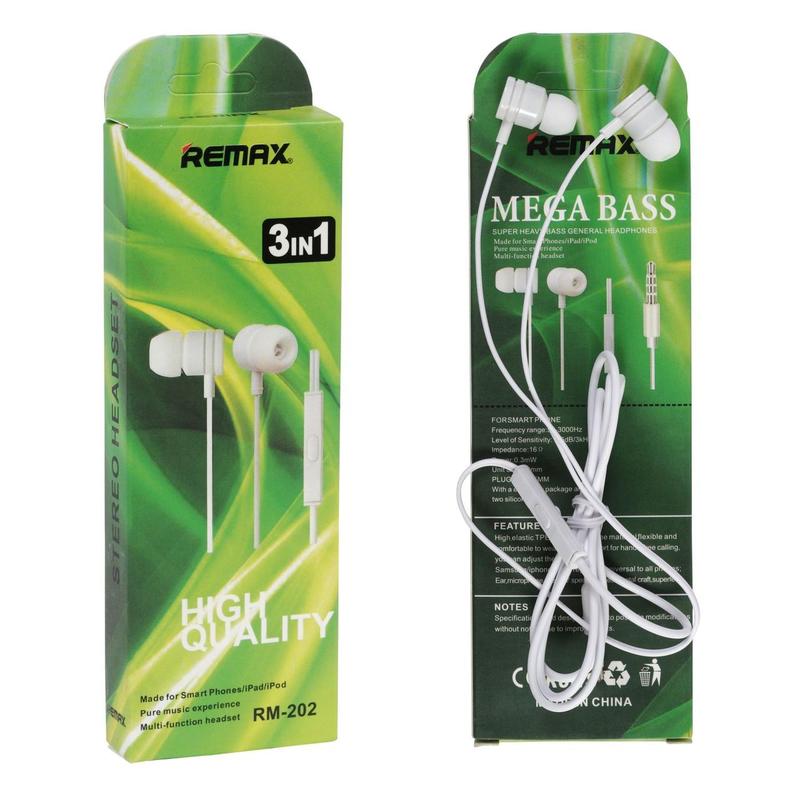 Наушники REMAX с микрофоном RM-202 Бренд Remax Вид наушников Вкладыши Микровон (гарнитура) С микрофоном Тип подсоединения AUX 3,5mm id up11956
