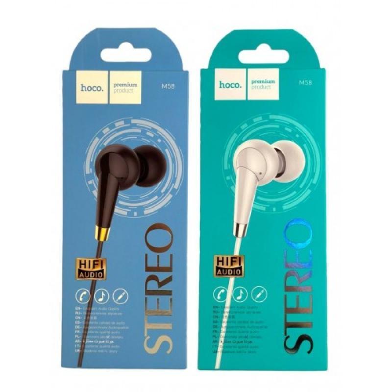 Навушники HOCO M58, провідні, вакуумні. Мінімальна відтворювана частота - 20 Гц. Максимальна відтворювана частота - 20000 Гц. Імпеданс - 16 Ом. Чутливість - 95 дБ. Діаметр мембрани - 10 мм. Роз'єм штекера - mini jack 3.5 мм. Довжина кабелю - 1,2 м. Упаковка – коробка.