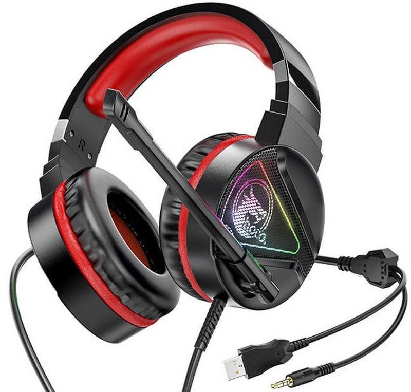 Наушники игровые hoco w104 drift с микрофоном led подсветкой 98дб red/black