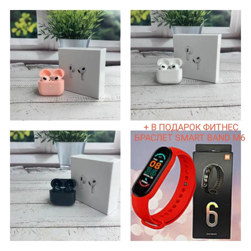 Беспроводные блютуз навушники airpods pro 3 + подарунок фитнес браслет м6