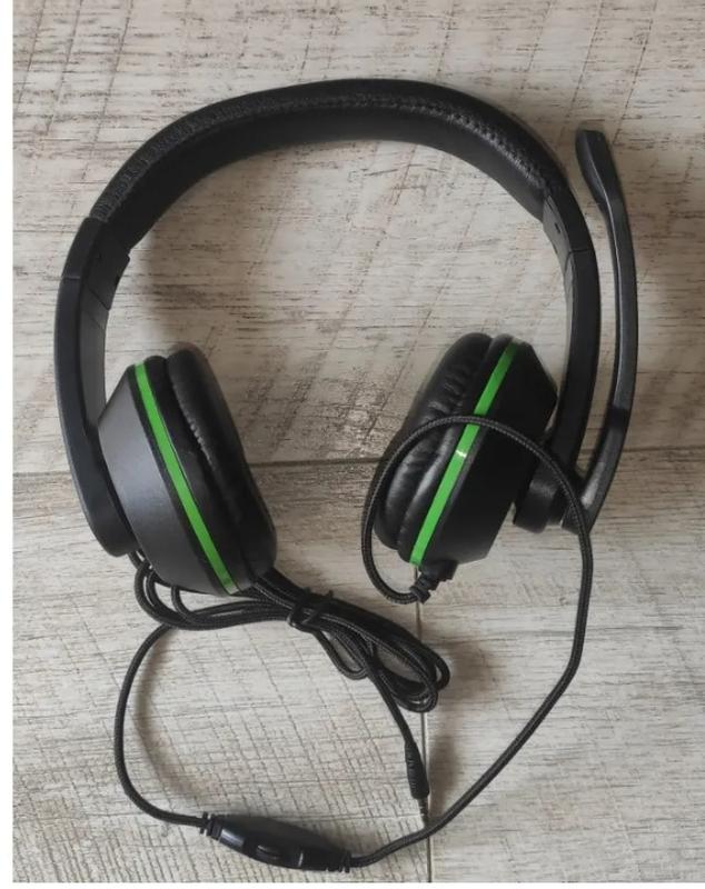 Наушники ведущие с микрофоном KR-GM202 с регулятором громкости черные с зеленым.
