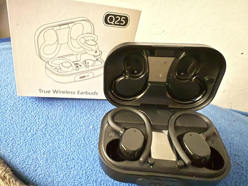 Опис товару із сайту Амазон: 150 годин відтворення: бездротові навушники Q25 мають 6 годин відтворення поодинці, а чохол для заряджання забезпечує додаткові 150 годин автономної роботи, ви можете насолоджуватися музикою у будь-якому місці та в будь-який час. Спортивний дизайн: навушники мають унікальну бездротову конструкцію, що не заплутується, доповнену м'якими гачками вушними, тому вам не потрібно турбуватися про те, що беруші випадуть, навіть якщо ви виконуєте напружені вправи. Глибокі баси: бездротові навушники з 10-мм динамічним повнодіапазонним драйвером, після ретельного налаштування інженерами-акустиками навушники Q25 можуть значно знизити втрати якості звуку. Чіпсет 5.0: бездротові навушники оснащені чіпом 5.0 для більш стабільного з'єднання, вищої швидкості передачі та сильнішого сигналу. Водонепроникність IPX7: бездротові навушники мають водонепроникне нанопокриття IPX7, спортивні навушники досить міцні, щоб протистояти проникненню води.