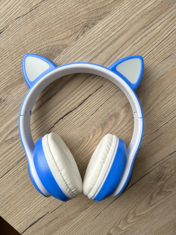 Бездротові навушники зі вушками, що світяться, і лапками. Мʼякі подушечки на навушниках гарантують комфортне носіння та звукоізоляцію. Висота регулюється, підійдуть як дорослому, так і дитині. Компактно складаються. На задній частині розташовані кнопки для регулювання гучності, перемикання пісень, зупинки музики та вимикання навушників. Є розʼєм для картки памʼяті. Підійдуть до всіх моделей смартфонів із підтримкою Bluetooth. Після повної зарядки працюють до 10-ї години. У наборі є USB-кабель для заряджання.