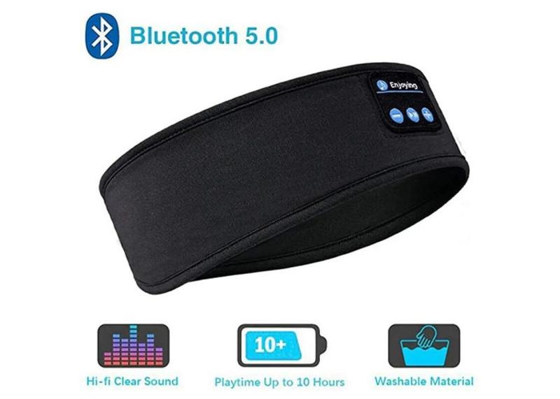 Повязка на голову с bluetooth наушниками удобная гарнитура для спорта сна и отдыха. черная