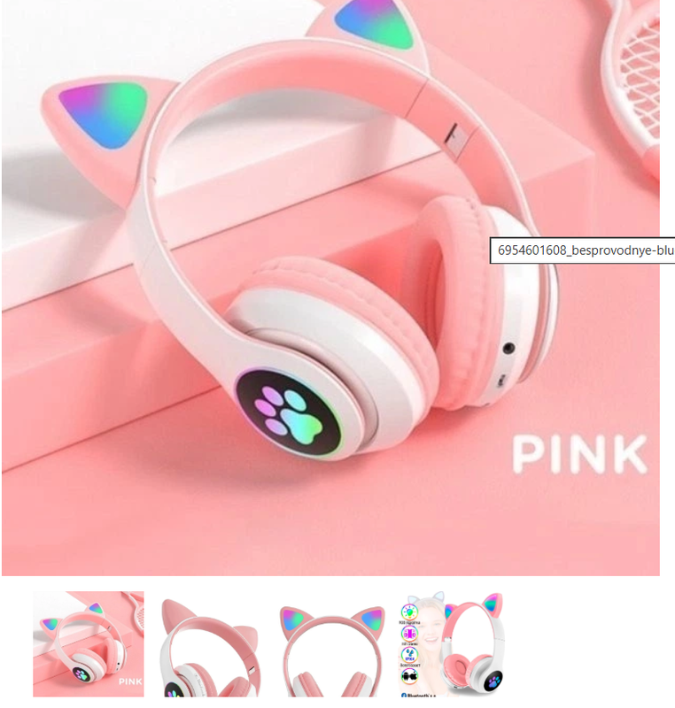 Бездротові Bluetooth-навушники з вушками з LED-підсвіткою JST-28 Рожеві