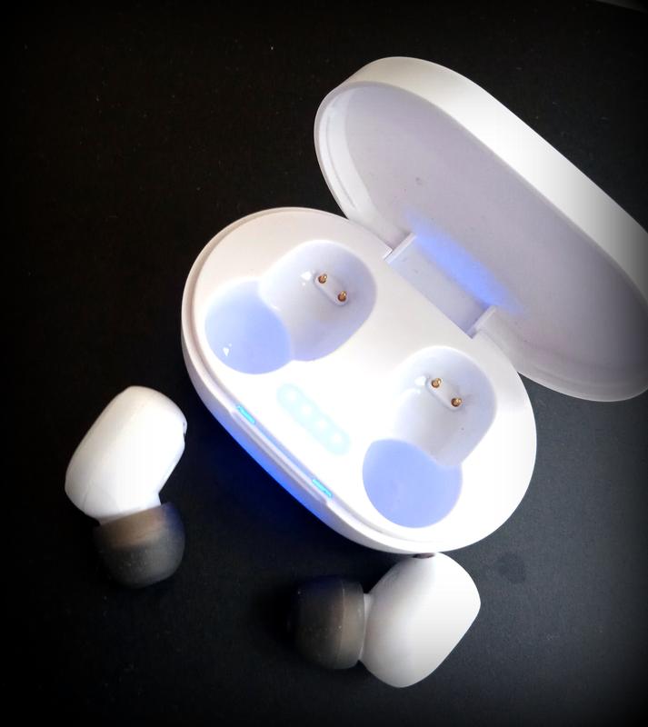 Пара наушников true wireless stereo (tws) в зарядном футляре.