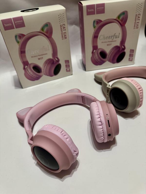 ✨ Бездротові навушники HOCO з котячими вушками ✨ Стильні, м’які та дуже зручні — ідеальний вибір для тих, хто любить милий дизайн і якісний звук. 🔹 LED-підсвітка у вушках — яскраво світяться та створюють настрій 🔹 Bluetooth-підключення — швидко з’єднуються з телефоном 🔹 М’які амбушури та комфортна посадка 🔹 Легкі, складні, підходять для щоденного користування Чудовий подарунок і для дітей, і для всіх, хто обожнює стильні гаджети 💗 Готові до використання одразу! Без дефектів , повністю нові!!