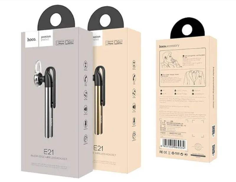Гарнітура Bluetooth Hoco E21 Моно-бездротовий динамік гарнітури Е21 спеціально розроблений для використання протягом тривалого часу і не викликає дискомфорту завдяки унікальній насадці та невеликій вазі - 8 грам. Підтримка бездротового мультимедіа, використовуйте для прослуховування музики, розмови по телефону, підключайте до будь-якого пристрою через бездротовий зв'язок Bluetooth. На корпусі розміщено індикатор потужності, micro-USB, мікрофон, клавіша перемикання/клавіша відповіді. Цікавий дизайн - тримач, як у ручок, прикріпіть пристрій на кишеню вашого піджака і переконайтеся у зручності використання. Радіус дії: 10 м. Потужність: DC 5V. p Потужність акумулятора: 45 мАч. Безперервна робота протягом 3 годин. Вид навушників: Вставні ("затички") Довжина кабелю: 0.5 м Максимальна відтворна частота: 10000 Гц Матеріал амбушюра: Силікон Мінімальна відтворювана частота: 20 Гц Тип кріплення: Кріплення на вусі Тип призначення: Гарнітура Тип підключення: Bluetooth Тип роз'єму: micro-USB Форма роз'єму: Прямий Комплектація: - запасні беруші - кабель - інструкція У ящику 134 шт. * * * Минимальная общая сумма заказа в корзине -- 333,00грн. Наш график работы: сб-чт 09:00-17:00. Заказы, оформленные после 16:00, будут приняты и обработаны на следующий рабочий день! Товар вартістю до 10 $ поверненню та обміну не підлягає!!!