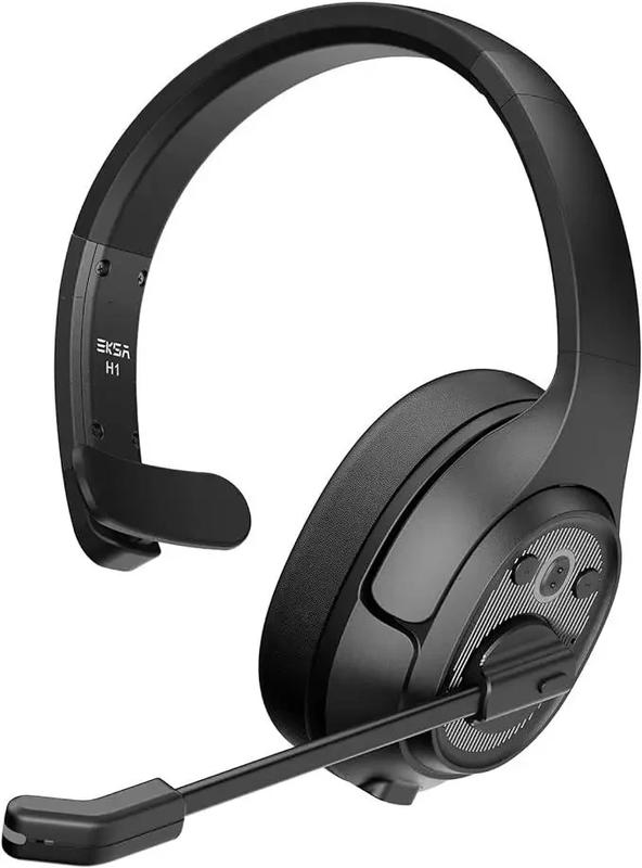 Bluetooth-гарнітура EKSA H1 з мікрофоном, бездротові навушники колл-центру з шумозаглушенням ENC, підключення накладної гарнітури на відстань 30 метрів для ПК/телефону/вантажівки/офісу/будинку Про цей товар ▶【Гарнітура з шумопоглинанням】: чіп ENC, вбудований у бездротову гарнітуру, фільтрує 96% фонового шуму. Поворотна на 120° мікрофонна штанга з точним позиціонуванням забезпечує чіткий запис голосу навіть у шумній обстановці, наприклад, колл-центрі, офісі або будинку. ▶【Відстань 30 м】: завдяки технології Bluetooth 5.0 відстань стабільного з'єднання Bluetooth може досягати 30 метрів. Тепер з Bluetooth-гарнітурою H1 One Ear більше немає обмежень щодо кабелю та відстані! ▶【30 годин у режимі розмови】: акумулятор Bluetooth-гарнітури ємністю 500 мАг забезпечує до 57 годин прослуховування музики, 30 годин розмови, 165 годин в режимі очікування. Усього 1,5 години на повну зарядку. Стан батареї відображатиметься на мобільному телефоні для полегшення перевірки. ▶【Широка сумісність】: Bluetooth-гарнітура EKSA H1 з мікрофоном підходить для ПК, комп'ютера, ноутбука, планшета, мобільного телефону, Windows XP/Vista/7/8/10, Mac OSX, Office, Skype, Zoom, вебінару тощо. д. Вище , він також має функцію подвійного сполучення (гарнітура підключається до 2 пристроїв одночасно.) ▶【Надлегкий та комфортний】: вага всього 140 г! Регульоване оголов'я із металевої сталі, м'які амбушюри зі штучною шкірою сприяють комфорту носіння та довговічності. Вбудований вимикач звуку та регулятор гучності дозволяють легко керувати телефоном під час дзвінка.