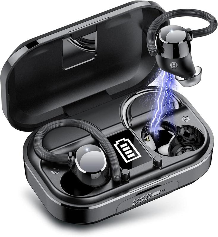 Бездротові навушники VOESUD Q53, Bluetooth 5.2 з мікрофоном, ЕРГОНОМІЧНИЙ ДИЗАЙН ВУШНИХ ГАЧКІВ ТА ІНТЕЛЕКТОРНЕ СЕНСОРНЕ КЕРУВАННЯ - Розроблені для спорту з м'якими вушними гачками, бездротові навушники не випадатимуть навіть під час інтенсивних тренувань. Завдяки високочутливій сенсорній технології, дотик пальцем може легко реалізувати різноманітні функції, зменшуючи тиск на кнопку на вусі. Bluetooth 5.1 та автоматичне сполучення: Найновіший чіп Bluetooth 5.1 та антена FPC забезпечують швидше сполучення, стабільне з'єднання та передачу сигналу (дальність 20 м без перешкод). Просто вийміть два навушники або один навушник після активації функції Bluetooth, вони відкриються та підключаться автоматично. Потужний чіп Bluetooth 5.1 ідеально підходить для планшетів, ноутбуків та смартфонів. Чіткі дзвінки та захопливий звук: Оснащені високочутливою діафрагмою та подвійними 10-мм провідниками, можуть зменшити навколишній шум на 80% та покращити ваш голос. Ці бездротові навушники можуть відтворювати потужний динамічний звук та підкреслювати насичені деталі голосу, відновлювати автентичність звуку та динаміку голосу. Зменшення шуму під час дзвінків дозволяє здійснювати кришталево чисті дзвінки та занурюватися у чудовий світ музики. 【100 годин відтворення та зарядний футляр зі світлодіодним підсвічуванням】Bluetooth- навушники можуть працювати до 7 годин на одному заряді, а зарядний футляр ємністю 2600 мАг може забезпечити 100 годин роботи навушників. Ви також можете використовувати зарядний футляр зі світлодіодним підсвічуванням для заряджання телефону, що ідеально підходить для щоденних подорожей, тренувань та роботи. Водонепроникність IPX7 для спорту: справжні бездротові навушники мають нанопокриття для запобігання щоденним бризкам, поту та дощу. Це хороший вибір для інтенсивних тренувань та будь-яких погодних умов. Q53 - ідеальний супутник для бігу, йоги, тренажерного залу, їзди на велосипеді тощо.
