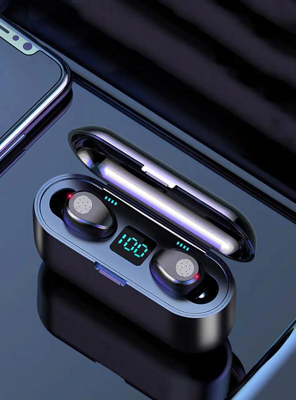 Беспроводные наушники tws bth-f9-5 c power bank ТЕХНИЧЕСКИЕ ХАРАКТЕРИСТКИ: Наушники power bank 2 в 1 Тип наушников: вакуумные Тип соединения: беспроводные Особенности: Android-совместимость Apple- местность TWS (2 отделяют) Басовые, с влагоотделением, с влагоотделителем, blue встроено активным шумоснабжением: Black Функции и возможности: регулятор, функция ответа на поддержку звука: 2. Материалы амбушюр: сконы частоту наушники: 20-20 0000000-3: Временная шумовая связь: