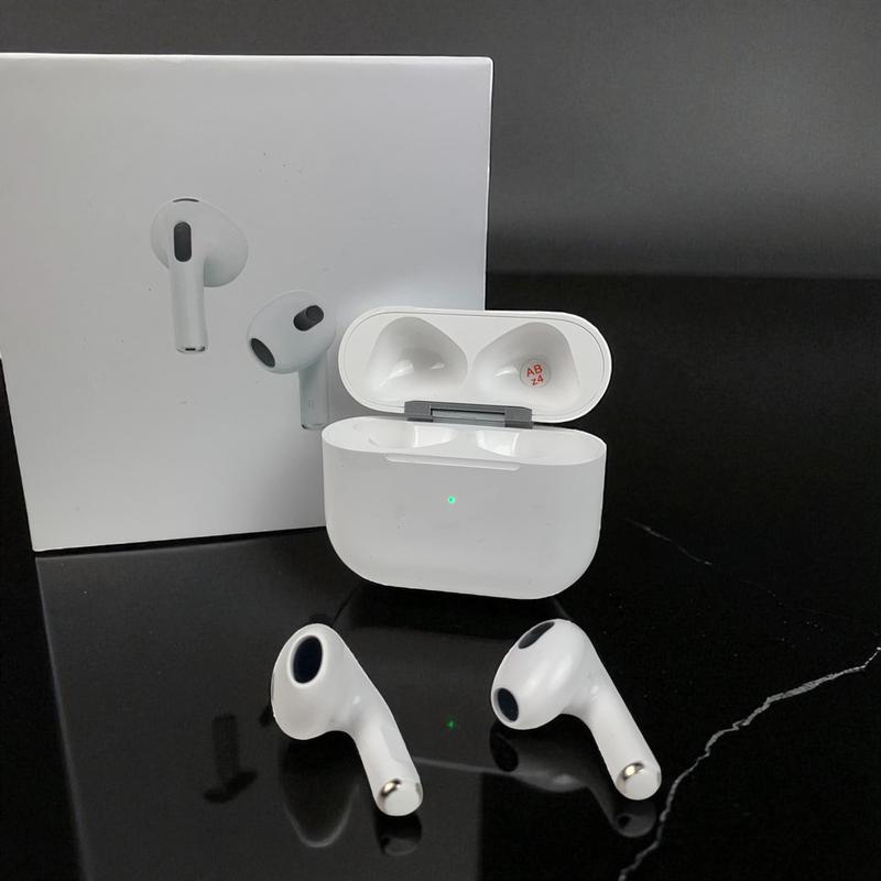 Беспроводные наушники TWS Air Pods 3 белые в магнитном кейсе, распродажа Характеристики: Распродажа остатков с магазина; Беспроводные наушники TWS Air Pods 3 в магнитном кейсе белый Вид: беспроводные наушники; Совместимость: IOS, Android; Материал: качественный пластик; Магнитная крышка на кейсе; Разъем кейса: lightning; Технические особенности Диаметр мембраны: 10 мм Импеданс: 32 Ом Максимальная воспроизводимая частота: 20000 Гц Минимальная воспроизводимая частота: 20 Гц Радиус беспроводной связи: 10-15м Чувствительность: 96 дБ Комплектация: коробка; наушники; кейс; инструкция; зарядный кабель