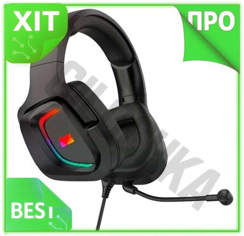 Ve навушники 2e hg340 gaming, new version black, 2x3.5 мм + usb для подсветки, мікрофон, д...