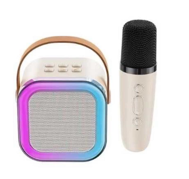 Ціна на 1 мікрофон 350 грн Ціна на 2 мікрофони 390 грн Ця компактна безпровідна караоке-система – ідеальне рішення для домашніх вечірок, дитячих свят та будь-яких розваг, де потрібен якісний звук та можливість співати. Вона складається з яскравої портативної Bluetooth-колонки небесно-блакитного кольору з вбудованим динаміком та ефектним підсвічуванням, а також двох безпровідних мікрофонів у тон, що дозволяють співати дуетом. Колонка має зручну ручку для перенесення, а мікрофони оснащені кнопками керування для регулювання звуку. Ця система легко підключається до будь-яких пристроїв через Bluetooth, забезпечуючи чистий та потужний звук. Це чудовий подарунок, який принесе багато радості та веселощів у будь-яку компанію, дозволяючи насолоджуватися улюбленими піснями та створювати власні музичні моменти. Характеристики Частота: 20000 Гц Призначення: Портативна аудіосистема з бездротовими мікрофонами, переносна якісна, музичний центр. Місткість зарядки: 2000 мАг Час відтворення: 4 години Зарядка: 1,5-2 години Матеріал: АБС пластик Вага колонки: 466 г Напруга постійного струму: 5 В/1 А