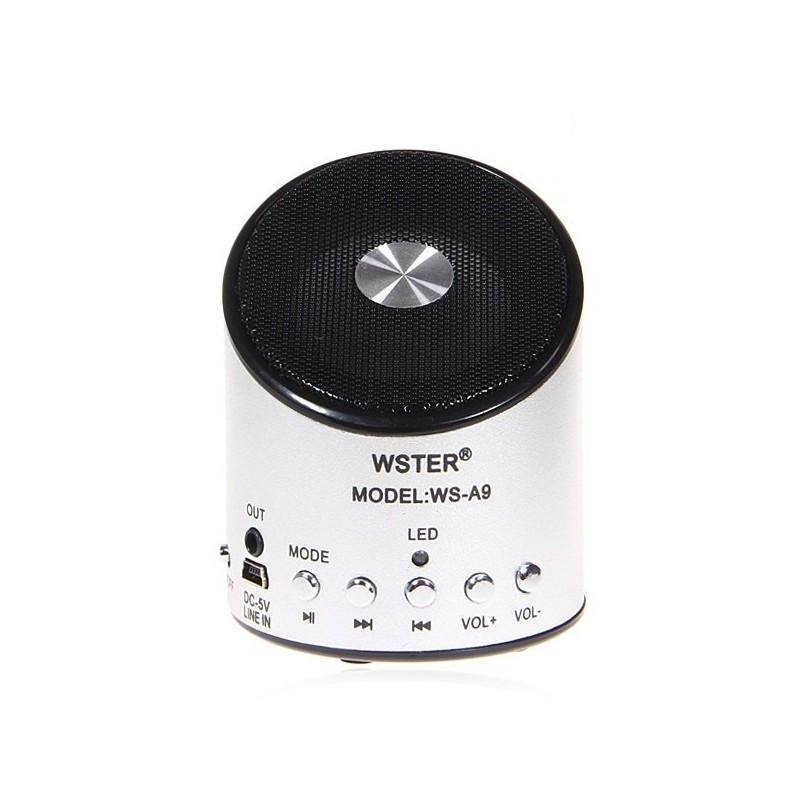 Портативная акустика Wster WS A9 ― предназначена для прослушивания музыки с сменных носителей, карт microsd, и usb накопителей. Также в колонке есть встроенный FM приемник с функцией автопоиск станций. К колонке возможно подключить смартфон или планшет, через встроенных линейный вход. Аккумулятор съёмный.
