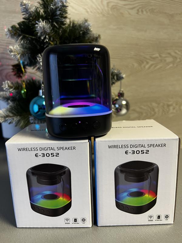 Компактна Bluetooth-колонка з яскравим RGB LED підсвічуванням для створення атмосфери. Bluetooth 5.0 забезпечує швидке підключення до телефону, комп'ютера та інших пристроїв. Технічні характеристики: • Потужність: 3 Вт × 2 (загалом 6 Вт) • Батарея: 2000 мАг для тривалого відтворення • Частотний діапазон: 120 Гц – 18 кГц • Канали: 2.0 стерео • Співвідношення сигнал/шум: 60 дБ • Розміри: 68×63×84.5 мм • Корпус: міцний пластик ABS Ідеальна для дому, офісу або подорожей. Стильний дизайн з прозорими елементами та кольорова підсвітка створюють унікальну атмосферу під час прослуховування музики.