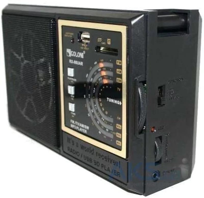 Виробник: Інший виробник Тип приймача: Приймач Тюнер: Аналоговий Тип живлення: Акумулятор Кілька примірників у наявності Портативна акустична система GOLON RX-98UAR має вбудований акумулятор, завдяки йому ви зможете слухати улюблену музику з USB-флешки, карти пам'яті SD, FM-радіо, на дачі, на відпочинку, далеко від розетки. Підходить для місцевості з поганим рівнем сигналу, має високий рівень чутливості та впевнене приймання радіосигналу. На дисплеї зображається FM частота, номер треку. Корпус зроблений із пластику, легко носити із собою. Є 3 варіанти живлення: вбудований акумулятор (до 8 годин), батарейки R20 4 шт., від мережі 220 В (шнур у комплекті), від нього ж із заряджається вбудований акумулятор. Технічні характеристики: Автосканування FM-радіостанцій. Частотні діапазони: FM:87,5-108 MHz. Запам'ятовує радіостанції. Аудіовихід Аудіовхід Висока чутливість. Живлення: Акумулятор 6V (вбудований). Заряджається від мережі 220v MP3 плеєр — USB/SDcard вхід (підтримує USB-флешку та карту пам'яті). Підтримка форматів MP3/WAW/WMA Лінійний вхід можна використовувати як колонку для ПК, телефона або для плеєра. Два стереодинаміки Вихідна потужність — 6W (3W+3W) FM діапазон: 64 - 108 МГц TV-стандарт: 2 - 5 канал AM діапазон: 530 - 1600 КГц SW діапазон: 7.5 - 19.0 МГц Антена: телескопічна Підтримка носіїв інформації: USB, SD Підтримувані аудіоформати: MP3, WMA, WAV Вихід на навушники: 3.5 мм. Комплектація: радіоприймач шнур живлення ремінець пульт ДК паковання - Відправки по Україні Новая Почта. Укр Почта. Способи оплати: - На карту Приват Банк. - Накладене плаття.