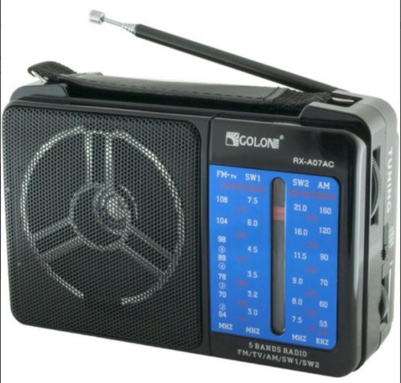 Портативная акустическая система "GOLON" RX-A07AC, вы сможете слушать любимую музыку с FM радио, на даче, на отдыхе, вдали от розетки, на дисплее отображается FM частота, номер трека, корпус из пластика, легко носить с собой, 2 варианта питания : батареи R20 2 шт, от сети 220 В (шнур в комплекте). Характеристики: Тюнер (аналоговый) диапазона ультракоротких, коротких и средних волн (УКВ, КВ, СВ): FM: 64-108 Mhz; AM: 530-1600 КГц; Для лучшей селективности поиска радиостанций, SW диапазон поделен на 2 под диапазоны. SW1: 3,0-7,5 МГц; SW2: 7,5-21,0 МГц; Телескопическая антенна (50 см) обеспечивает уверенный прием радиотрансляций; Длина антенны: 50 см. Питание: от сети 220В Батарея: R20, 2шт х 1,5 В (в комплект не входят) Вес: 0,440 кг; Размеры радиоприемника: 10,5х16х5,5 см;
