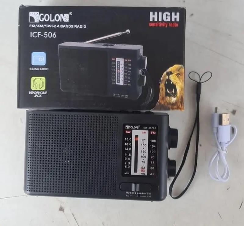 Акумуляторний радіоприймач із можливістю відтворення з Usb і microCD-флешки радіо FM/AM/SW. Радіоприймач ловить на частотах FM, AM, SW. Виготовлений виріб із міцних матеріалів, завдяки чому слугуватиме довгий час. Робота радіоприймача виготовляється від акумуляторної батареї. Особливістю цієї моделі є відтворення з Usb і microCD флешки. Характеристики: Діапазон частот: FM 88-108 MHz, AM 530 — 1710 KHz, SW 3.9 — 22 MHz, Акумулятор: 18650 Вихідна потужність: 3 Вт Вхід для блока живлення DC 5V IN В акустичній системі використані сучасні динаміки високої якості. FM/AM/SW радіо з Usb/TF Usb-TF-PC Link Гніздо для навушників (Зарядка через Usb дріт) Розмір пристрою: 13.4х3.5х7.65 см Розміри коробки: 15.3х44х8.2 см Чорний Комплектація: Радіоприймач Usb дріт