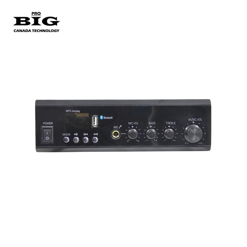 Трансляційний цифровий підсилювач Потужність: 50W RMS Вбудований MP3 плеєр з / жк дисплей /, BLUETOOTH / FM приймач AB-клас Входи: 2mic+ 3stereo line in +МР3, SD Card-плеєр, FM тюнер Напруга на виході: 70V \ 100V або 4-16 ом (низькоомийний режим) 2-х (Bass, Treble) смугий еквалайзер Частотний діапазон: 20Hz-20KHz