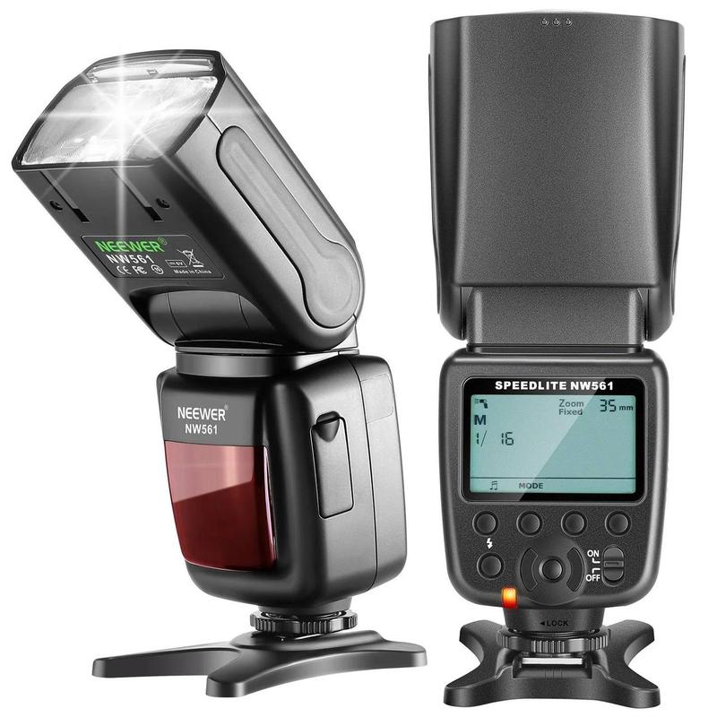 Спалах Neewer NW561 Потужний спалах з високою направляючою № 38 (ISO 100, 35 мм), підтримує режим спалаху M/MULTI/S1/S2; Примітка: Не підтримує TTL та функцію налаштування меню камери Надшвидкісна переробка зарядки: 0,1-5 с. Примітка: Сумісний з камерами Canon Nikon Panasonic Olympus Pentax Fujifilm та Sony з Mi Hot Shoe, такими як a9 a7 a7II a7III a7R III a7RII a7SII a6000 a6300 a6500 (НЕ сумісний з Canon 250D/1500D/2000D/4000D) Бездротовий тригер спалаху 3 в 1 2,4 ГГц дозволяє запускати позакамерні спалахи, студійне світло та камери на відстані до 100 метрів/328 футів. Технічні характеристики Провідний номер: 35 (ISO 100, 35 мм) Режим спалаху: M/MULTI/S1/S2 Покриття спалаху: Фіксований зум Голівка спалаху, що гойдається/нахиляється (відбитий спалах) Бездротовий спусковий гачок: Індукційний спалах S1/S2 Відстань бездротового спуску: У приміщенні 20-30 метрів; На відкритому повітрі 10-15 метрів Вертикальний: від -7 до 90 градусів; Горизонтальний: 0-180 градусів Колірна температура 5500K Час спалаху: 1/200 - 1/20000 секунди Час переробки: 2.9 секунди Час освітлення: 100-1500 разів Управління спалахом: 1/128 - 1/1, довжина кроку 0,3EV, загалом 22 ступені точного налаштування. Зовнішній інтерфейс: гарячий башмак, порт синхронізації з ПК, порт зовнішнього заряджання Живлення: 4 батарейки розміру AA (рекомендуються лужні або нікель- металогідридні, що перезаряджаються. Батарейки не входять до комплекту). Товар з вітрини, може бути пошкоджена коробка