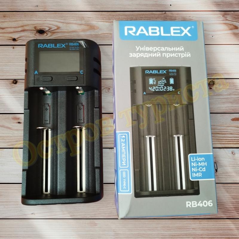 Универсальное зарядное устройство для аккумуляторных батарей Rablex RB-406 Блок питания в комплект не входит ,подходит блок для зарядки мобильных телефонов! Rablex RB 406 - это универсальное зарядное устройство. Заряжает самые разнообразные по типу и химии аккумуляторы: литий-ионные (Li-ion) никель-металлгидридные (Ni-MH) никель-кадмиевые (Ni-Cd) Таким образом, у Вас пропадает необходимость покупать несколько зарядных устройств, достаточно одного Rablex RB 406. Характеристики: Поддерживаемые аккумуляторы: - AA, AAA,АААА,C,CS,F6 (Ni-Cd/Ni-MH 1,2V) -Li-Ion,IMR 3,7V 26700,26650,26500,25500,22700,21700,20700,22650,22500.18700,18650.18500,18490,18350,17650,16650,16340,(RCR123),14650,14500 Входное напряжение: DC (Type-C) 5V/2A Выходное напряжение завершения зарядки (ЗУ автоматически распознает тип аккумулятора): Ni-Cd(1.2V) – 1,48V Li-ion(4.2V) - 4.2V Ток заряда: 0,5 А/1A/2A, выбирается нажатием кнопки (С) Максимальный ток заряда: Ni-Cd: 0,5А Li-ion: 2 А (1 А при зарядке 2 аккумуляторов) Размеры: 123 х 60 х 30 мм Длина кабеля Type-C: 45 см. Вес: 80 г Индикация заряда: LCD в процессе зарядки. Комплектация: Зарядное устройство Кабель для зарядки заводская упаковка Тканевый чехол Аккумуляторы с последнего фото в комплект не входят!!!
