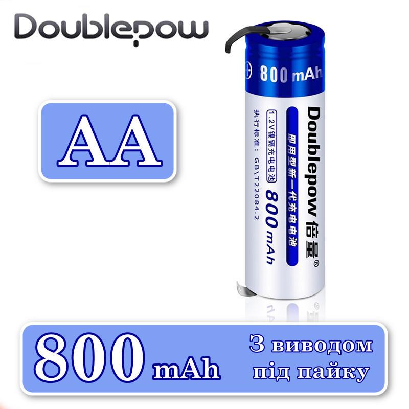 Акумулятор ni-mh aa (r6) doublepow 800mah 1.2v з пелюстками під пайку