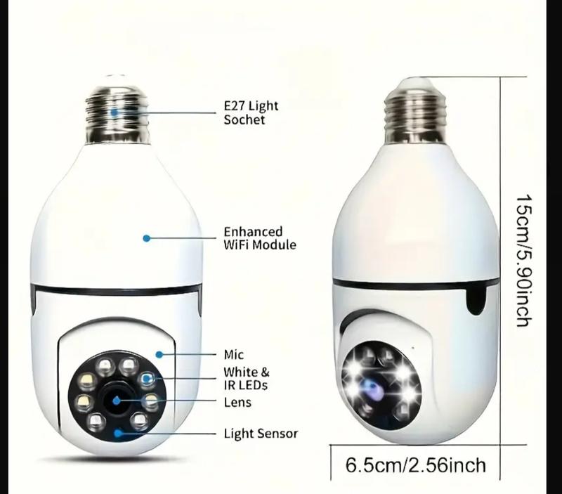 шт. Wi-Fi камера безопасности, панорамирование/наклон на 360 градусов, дизайн лампочки E27, система домашнего наблюдения, простая установка, блок питания 110-240 В, аккумулятор не входит в комплект.